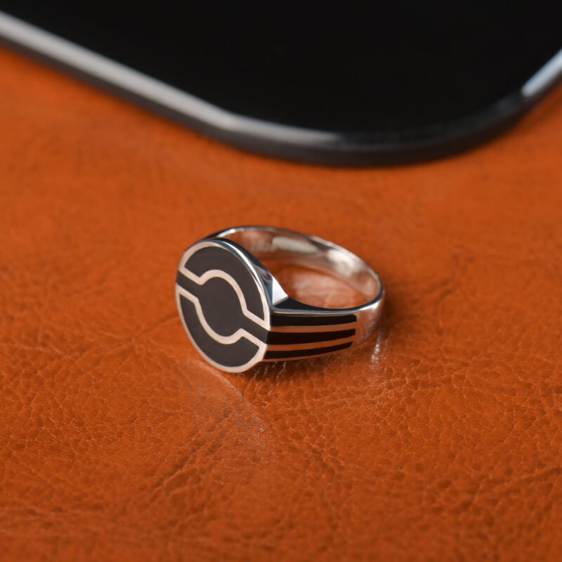 Chevalière Homme en Argent 925 et Émail Noir Intense