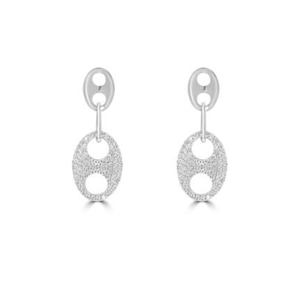 Confectionnées en argent 925 rhodié, ces boucles se distinguent par leur pierre rectangulaire taille émeraude montée sur une tige pavée de zircons cubiques. Leur silhouette fine et allongée crée un équilibre parfait entre brillance et minimalisme.