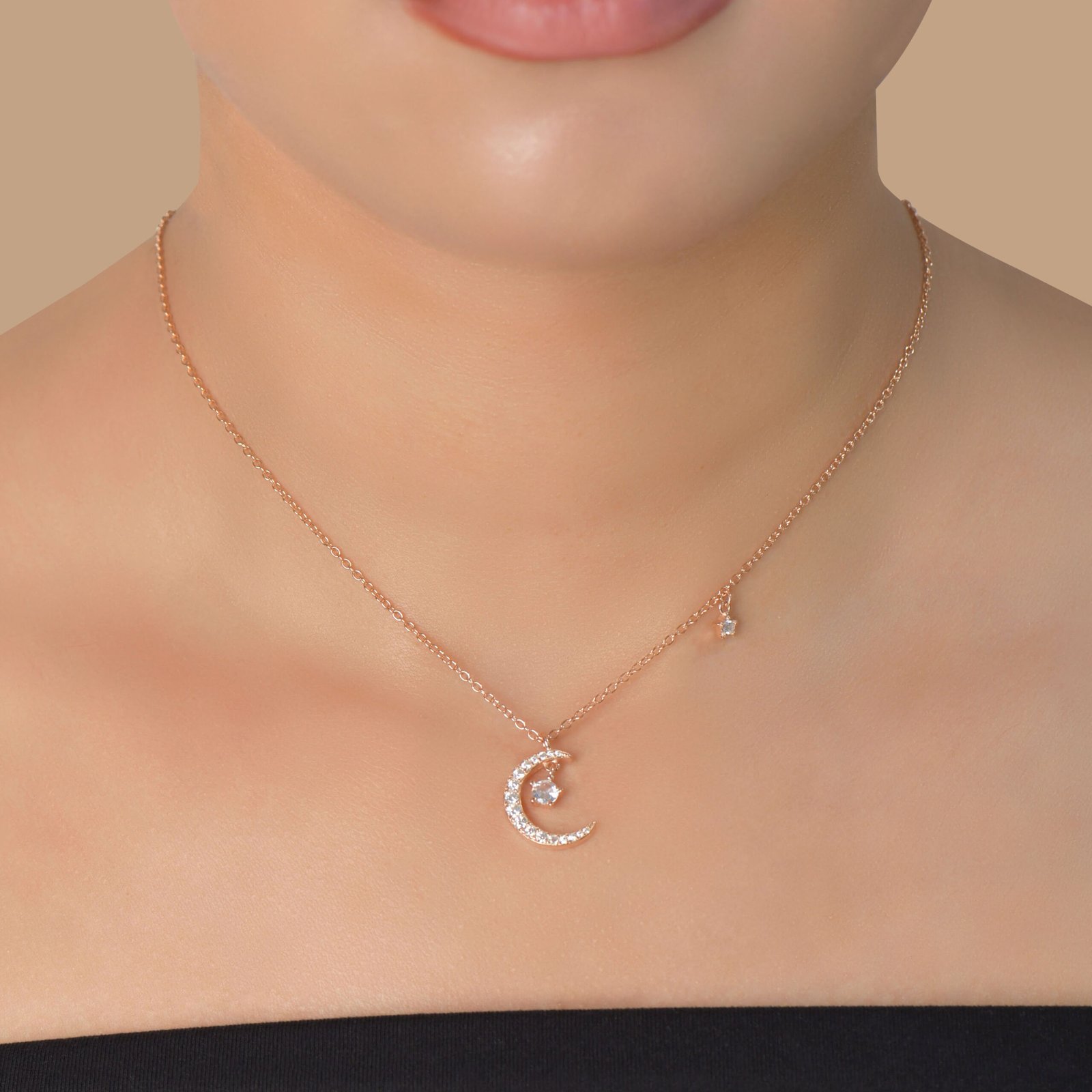 Ce collier lune en argent 925 plaqué or rose séduit par son design délicat et intemporel. Inspiré de la lune, il apporte une touche subtile de lumière et d’élégance à votre style.