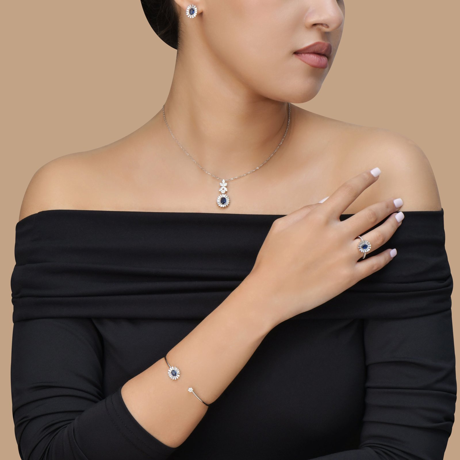 Chaque pièce a été soigneusement travaillée pour refléter la lumière et mettre en valeur la richesse de la pierre centrale. Son design inspiré de la joaillerie royale offre un équilibre parfait entre luxe intemporel et modernité, faisant de cette parure un choix idéal pour les grandes occasions comme les soirées, cérémonies ou événements spéciaux.